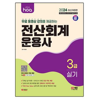2024 hoa 무료 동영상 강의를 제공하는 전산회계운용사 3급 실기, 박명희, 시대에듀