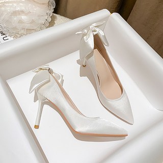 (당일배송) 루니엘 8cm 새틴 리본 화이트 웨딩 구두 1color